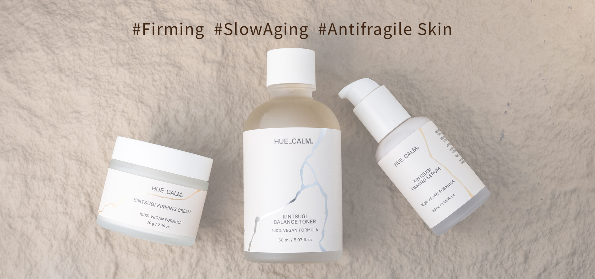 HUE_CALM Kintsugi Balance Toner → HUE_CALM Kintsugi Firming Serum → HUE_CALM Kintsugi Firming Cream