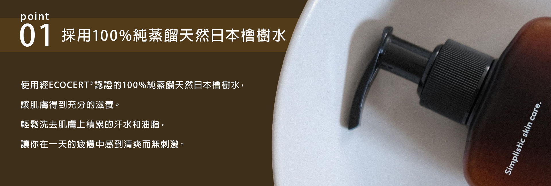 ➃ 48% ECOCERT®-Certified 100% Pure Hinoki Hydrosol: Gently purifies the skin, removing residual impurities to awaken a sense of clean.
