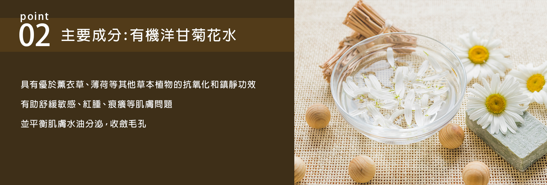 ➀ 46% Organic Chamomile Flower Water: Delivers exceptional soothing effects, providing lasting comfort and stability for the skin.