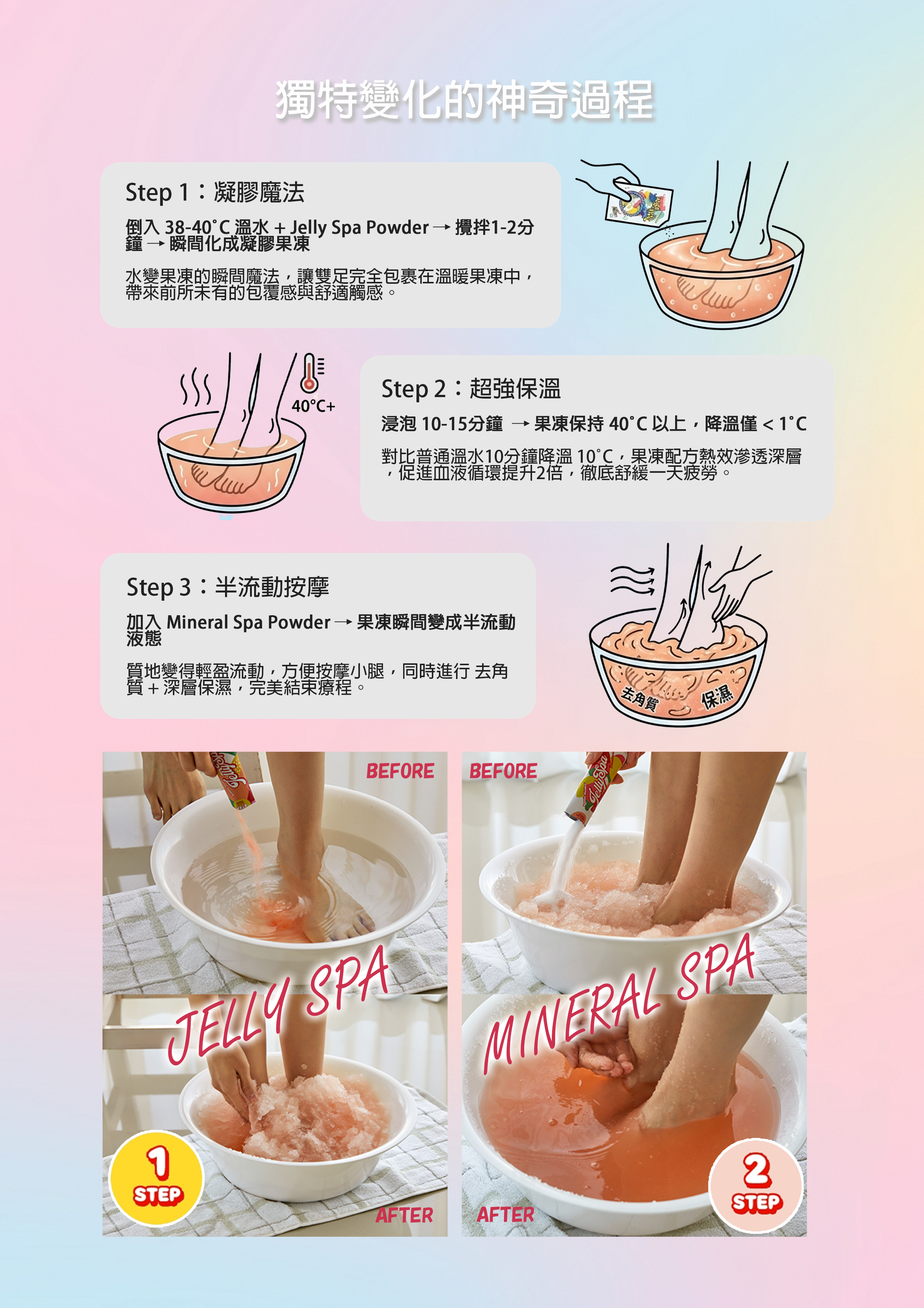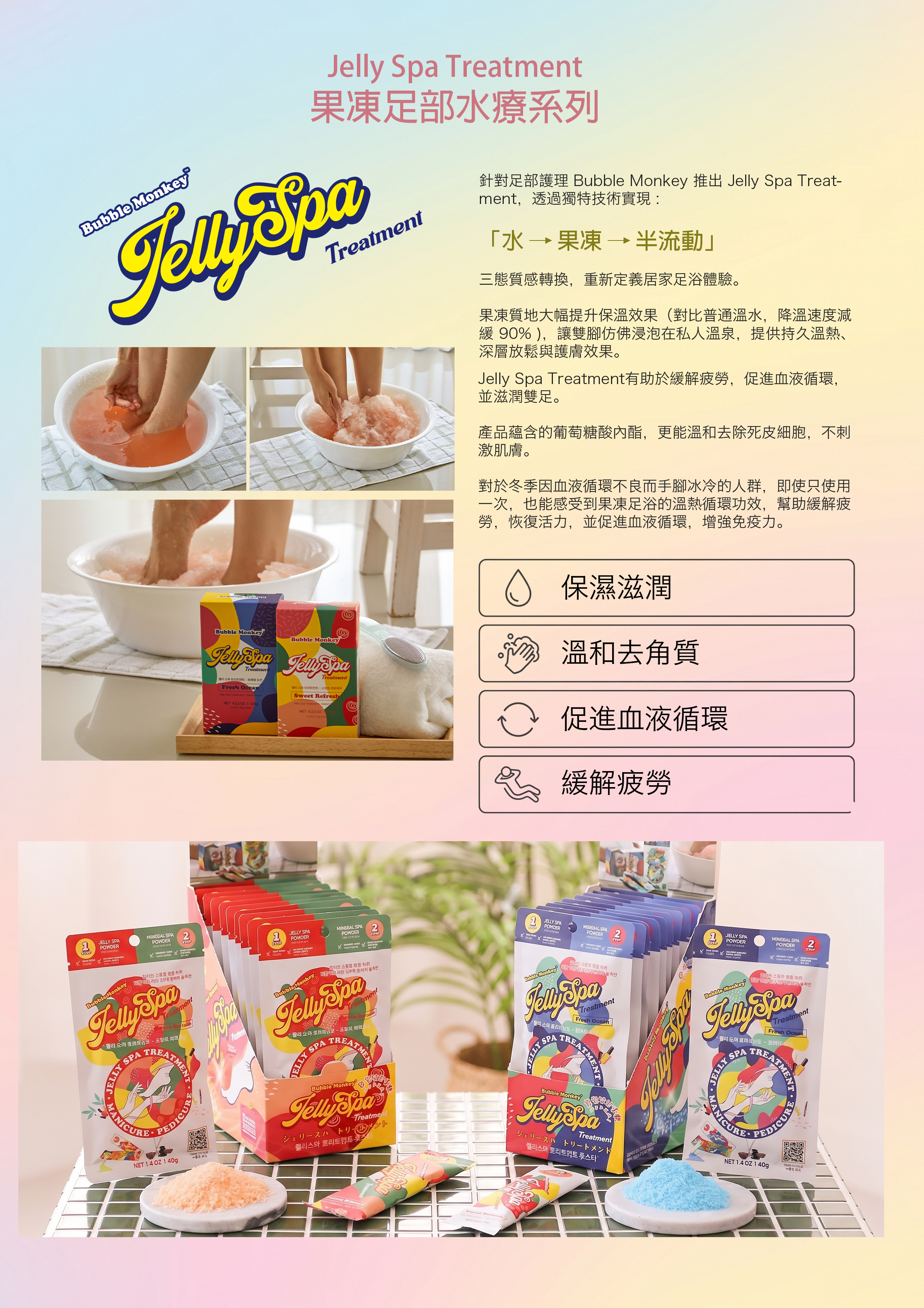 Jelly Spa Treatment有助於緩解疲勞,促進血液循環,並滋潤雙足。