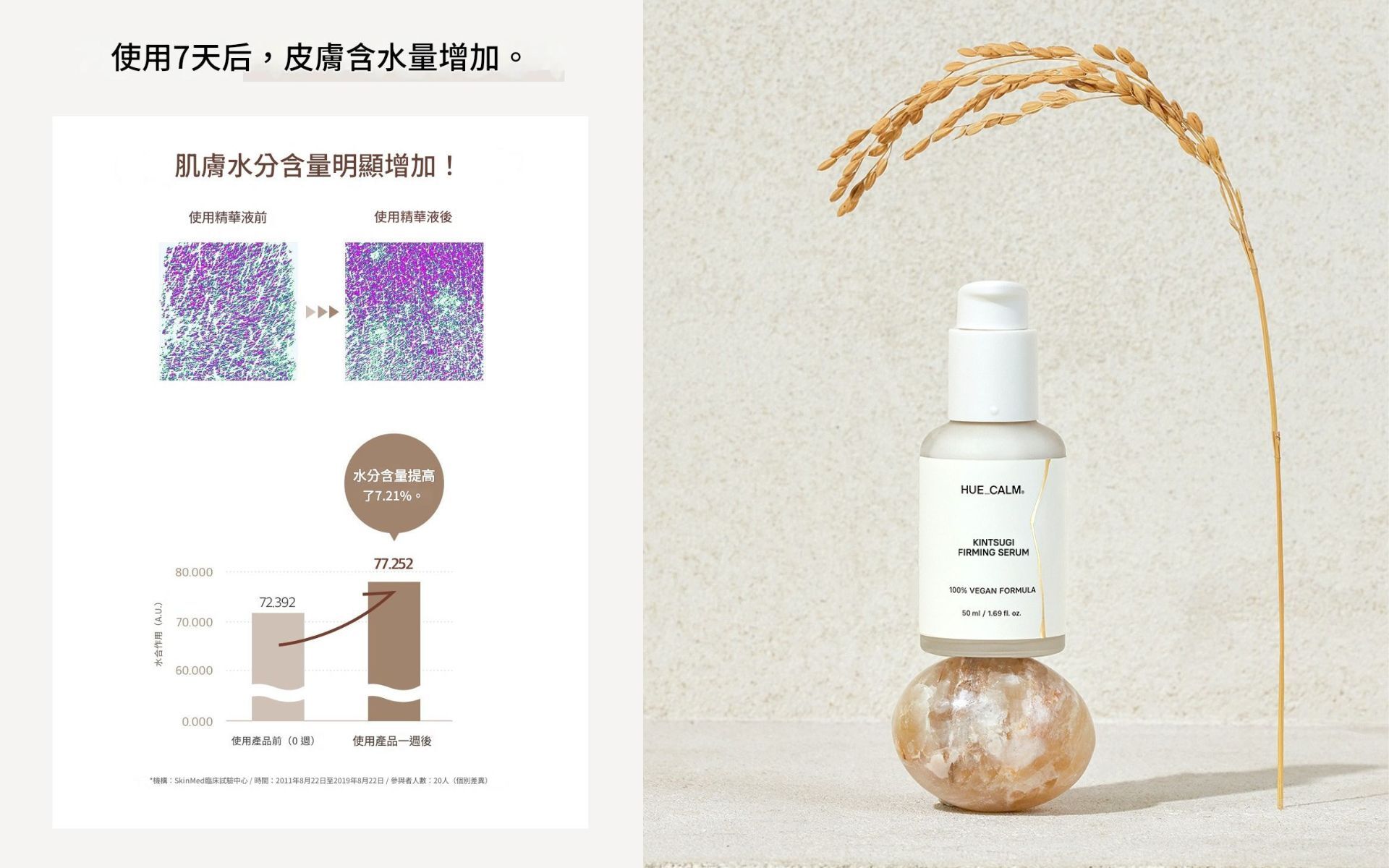 HUE_CALM 金繼緊緻精華液植物萃取配方能夠強化缺水受損的肌膚屏障,