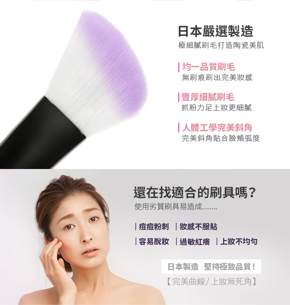 • 極細膩豐厚掃毛抓粉力足,上妝更細膩,無掃痕打造陶瓷美肌